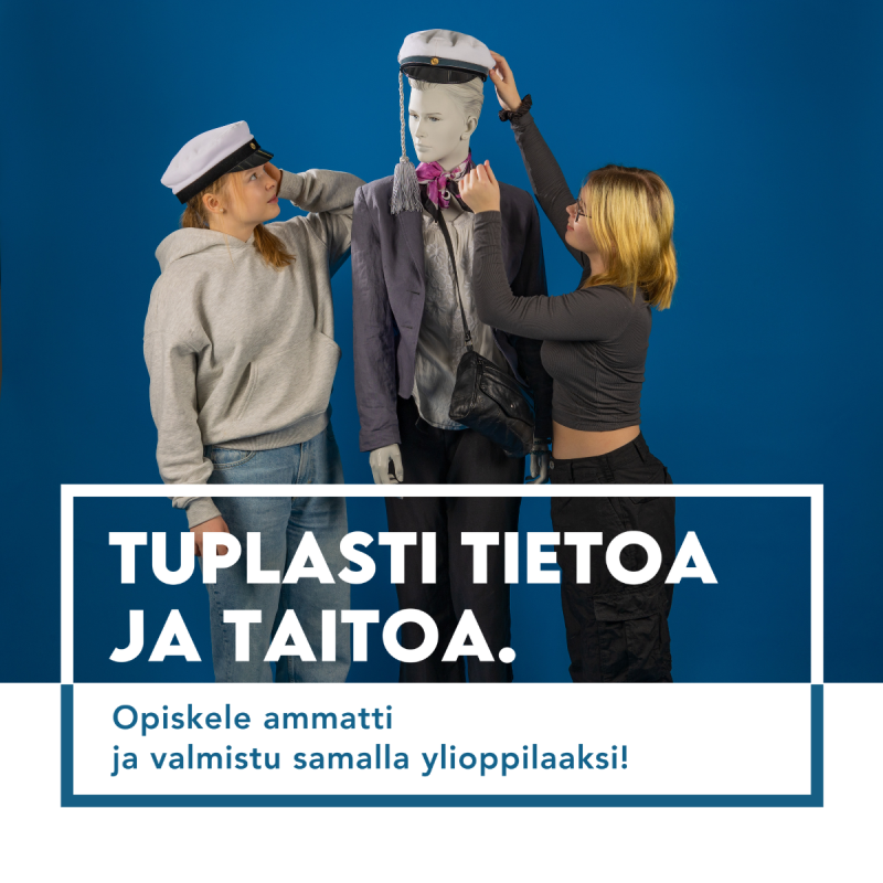 Oletko kiinnostunut suorittamaan sekä perustutkinnon että ylioppilastutkinnon? Kaksoistutkinto voi olla sinun valintasi! Lue lisää kaksoistutkinnosta.